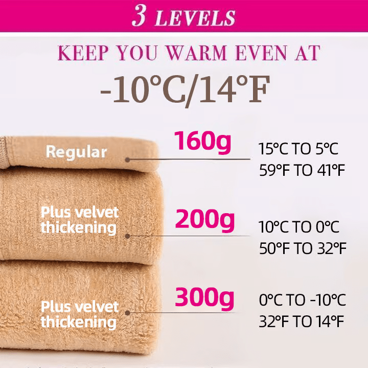- Three Versions for Different Temperatures: 160 g (regular), 200 g (Plus velvet thickening) and 300 g (Plus velvet thickening)