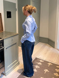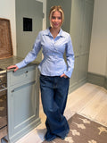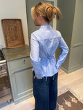 This tailored shirt combines style and comfort in a smart way. With long sleeves and a classic collar, it offers a timeless look. The ties at the sides can be fastened at the back, allowing you to easily adjust the waist for the perfect fit. The striped add a modern touch.