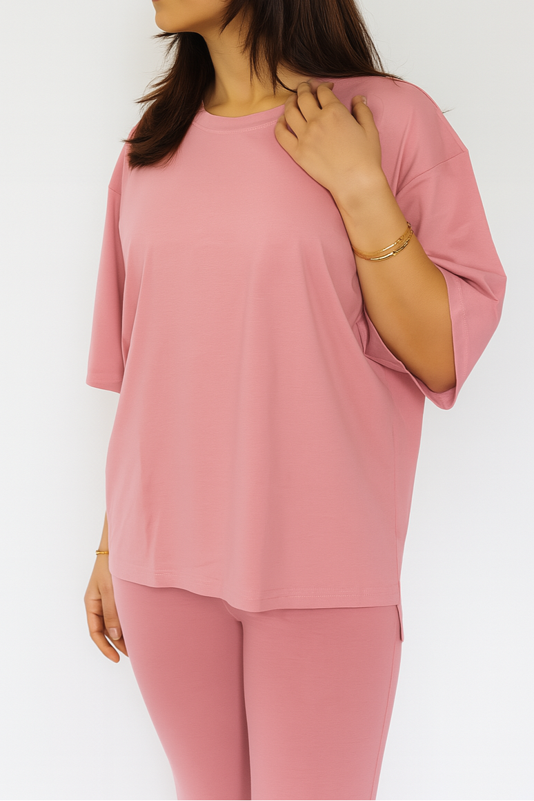 The All Weekend Long Pant Set is back in a new color! The top features the 2 side slits, and the same material and oversized flowy siloute as the original All Weekend Long Short Set. The bottoms have the same high waisted fit, but are now a pant version!