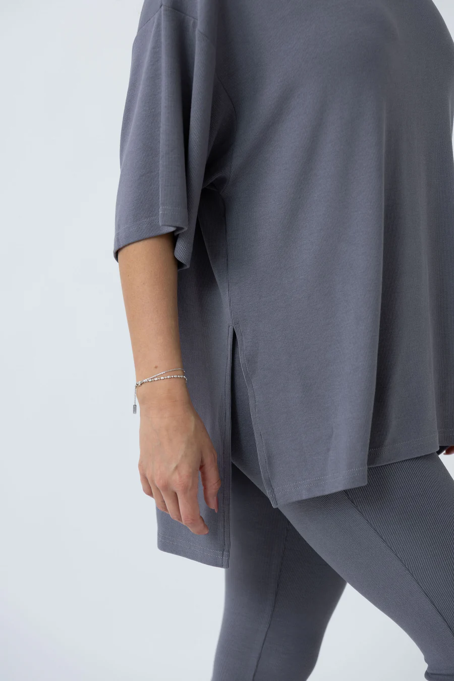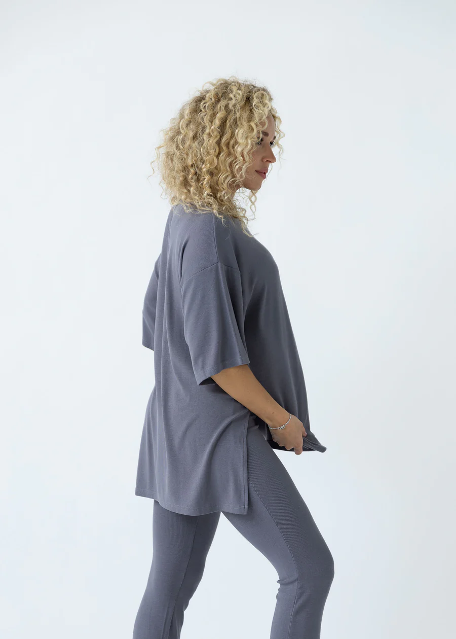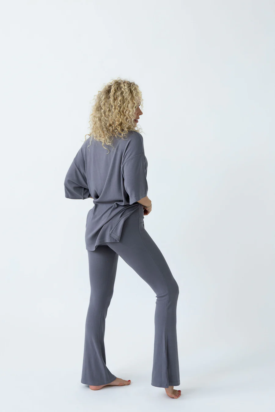 The All Weekend Long Set is now available in a new cut! The top features the 2 side slits, and the same material and oversized flowy silhouette as the original All Weekend Long Short Set. The bottoms have the same high waisted fit, but are now a pant version!