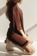 We now offer bundles! Get the black and brown together! You will be dressing this up for every occasion and dressing it down to wear around the house. This set was made for EVERYBODY. This oversized boyfriend tee comes with a pair of matching biker shorts. The material is soft, very stretchy and ribbed. The best part about these biker shorts is they do not cut into your waist, they lay flat. They are tight enough to hold you in, but loose enough to feel relaxed and comfortable. The relaxed fit of this outfit has made it a 10/10.