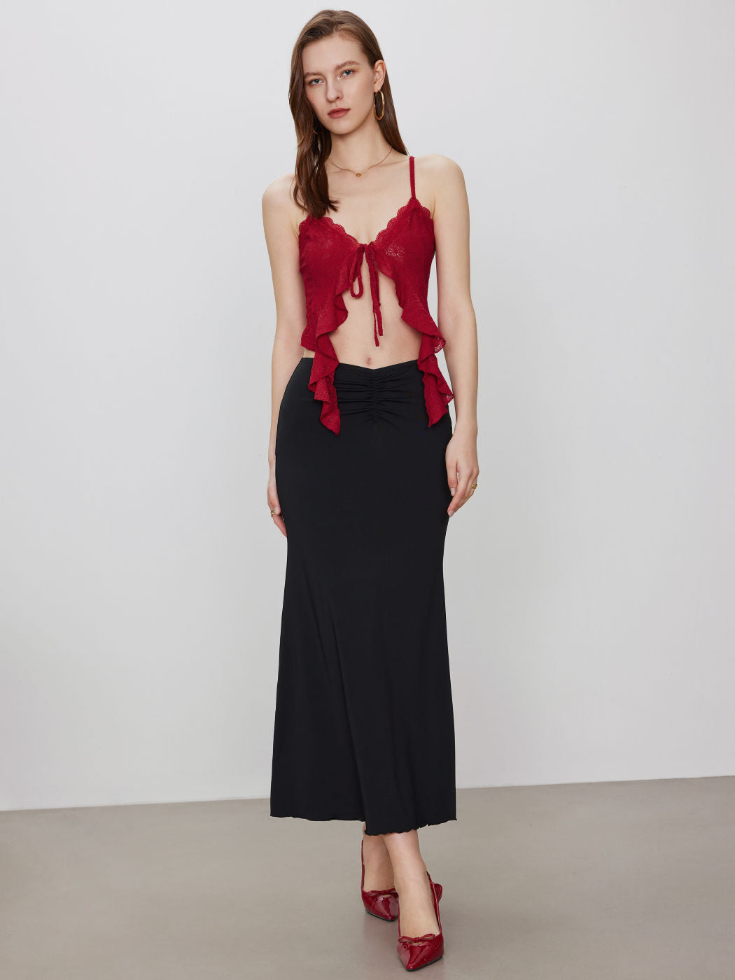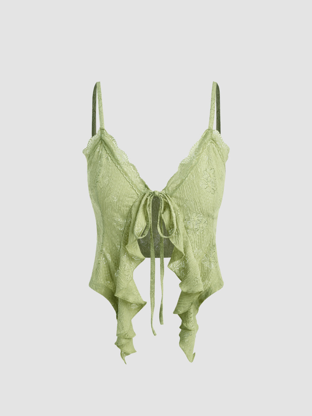 - Clothing Detail: Knotted,Lace,Ruffle Hem