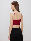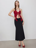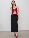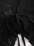 LACE RUFFLE HEM KNOTTED KNIT CROP TOP