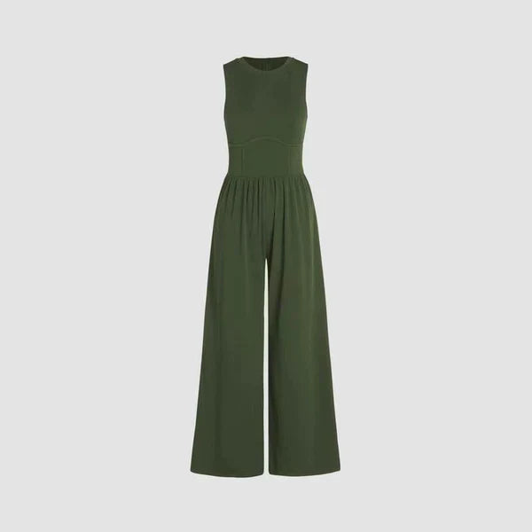 SOLID SLEEVELESS WIDE LEG JUMPSUIT
